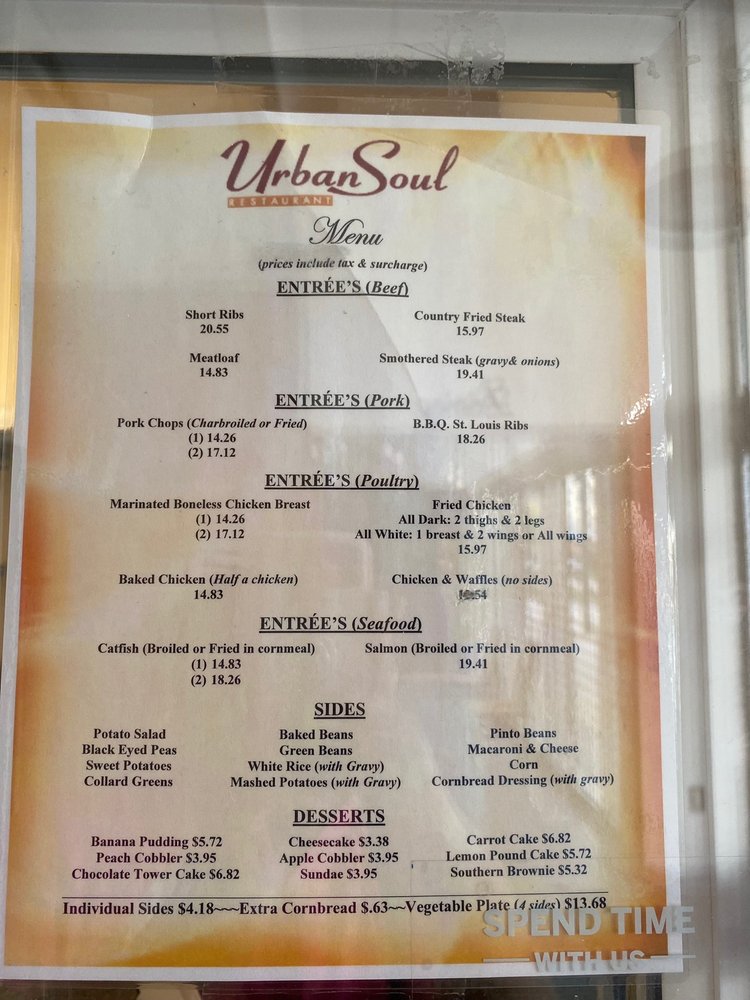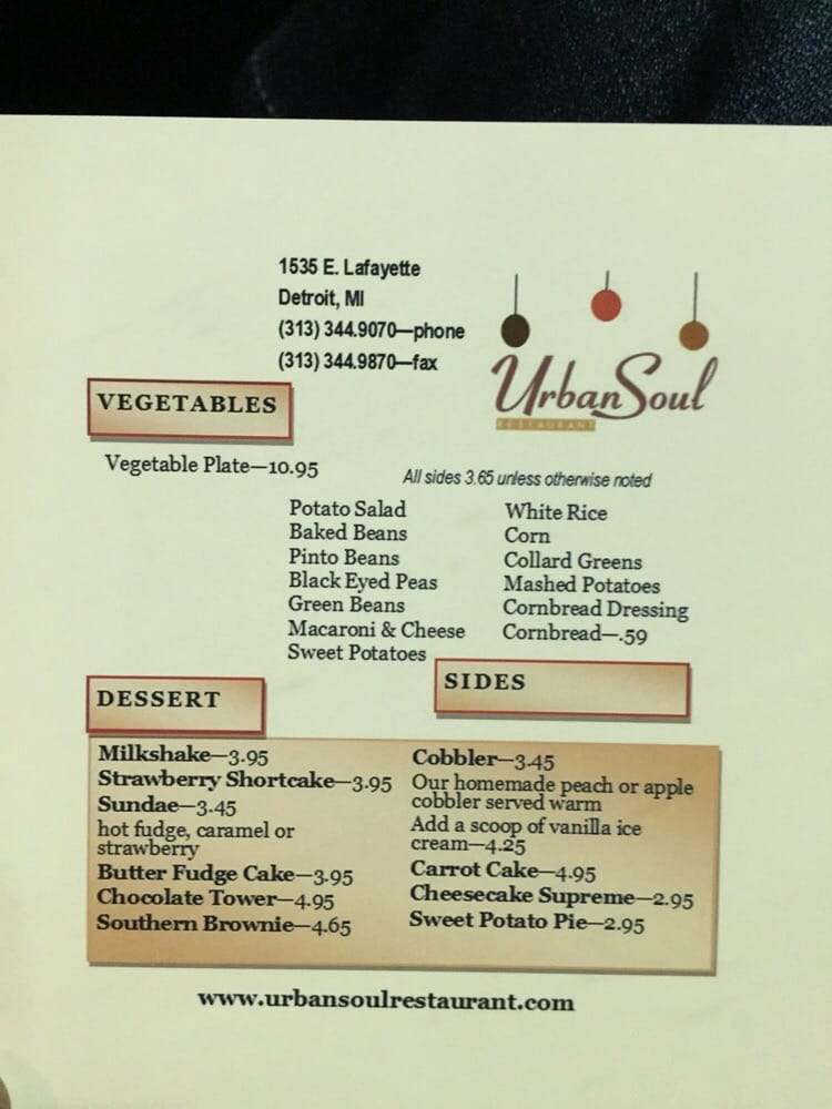 Urban Soul, located in downtown Detroit, MI, offers a Southern cuisine experience with a focus on comfort food. The menu features dishes like tender short ribs, flavorful catfish, cheesy Mac & cheese, and well-seasoned collard greens. Customers rave about the delicious food and great service provided. The restaurant is known for its accommodating staff and a pleasant dining atmosphere, suitable for groups of all sizes. With options for delivery, takeout, and catering, Urban Soul combines convenience with quality. Whether you're craving classic soul food favorites or looking to try something new, Urban Soul is a must-visit spot in Detroit for a satisfying and enjoyable dining experience.